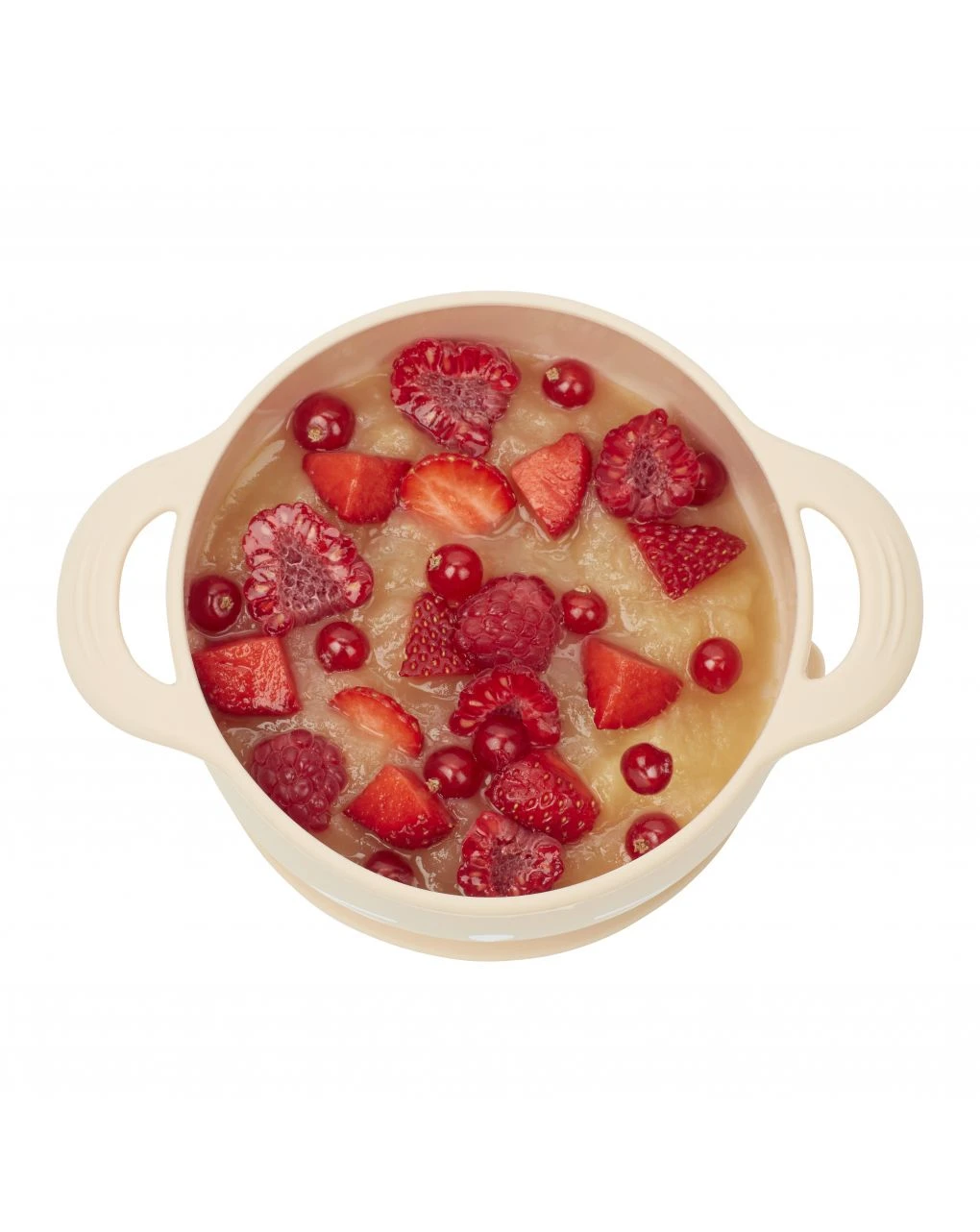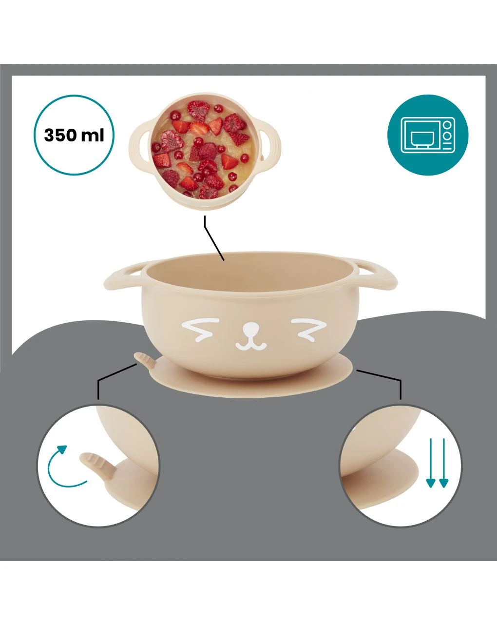 Ciotola in silicone resistente con ventosa antiscivolo. Adatto a microonde, forno e lavastoviglie.