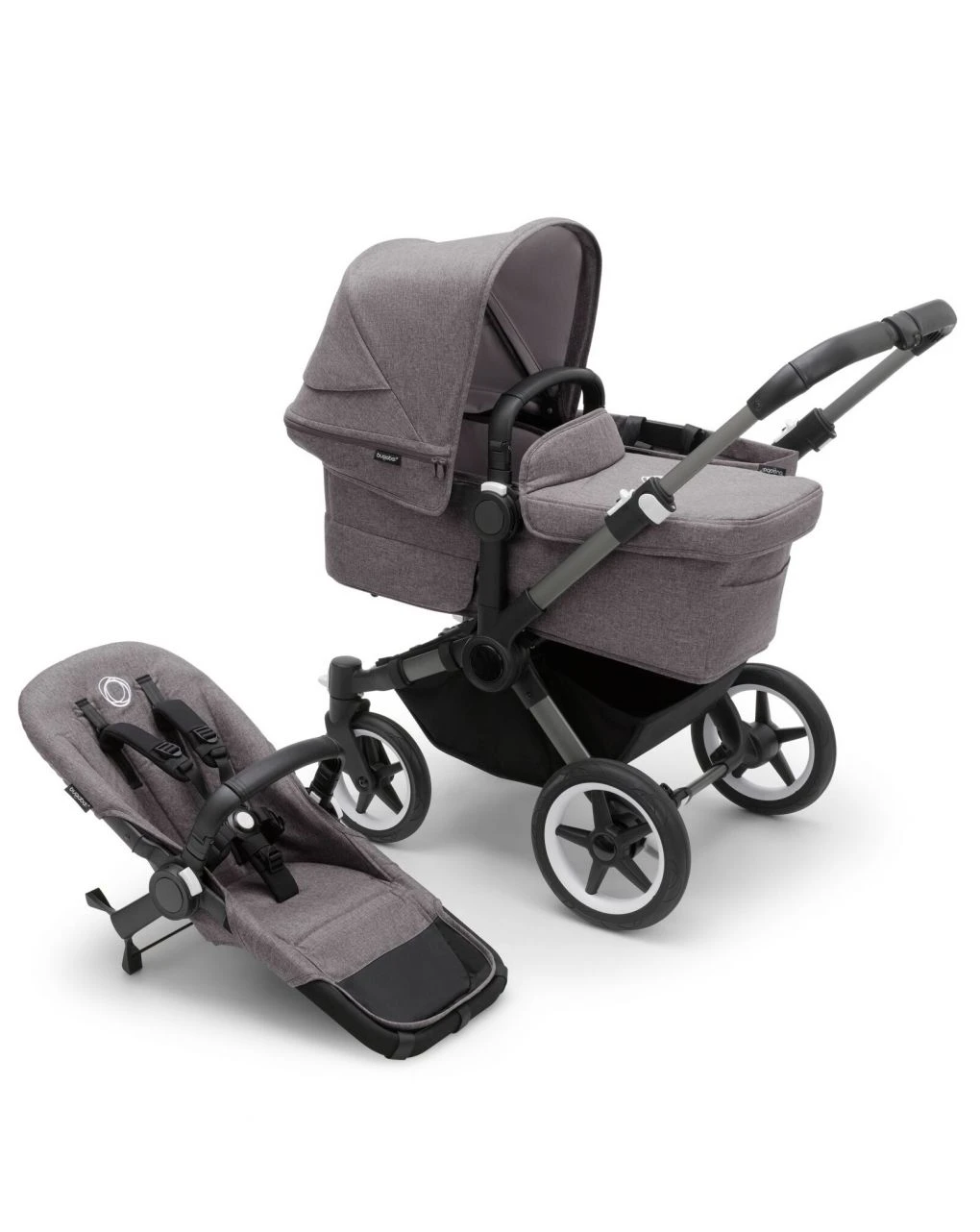Bugaboo Donkey 5 Mono Navicella E Passeggino Telaio Graphite, Tessuti E Cappottina Grey Melange
