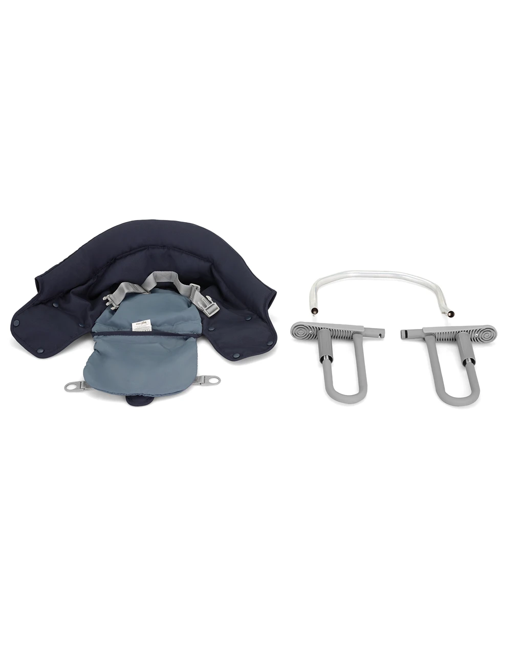 Favorisce l’armonia familiare perché, mangiando a fianco degli adulti, il bambino si sente partecipe, si rassicura e si abitua ai ritmi e alle abitudini della casa. Consente di vivere al meglio la vita sociale perché è trasportabile ovunque grazie all’ingombro ridotto, quando ripiegato e alla pratica borsa di trasporto integrata. Si fissa e si rimuove con estrema facilità e totale sicurezza, grazie al sistema a vite continua che garantisce il massimo grip al tavolo. Si adatta a quasi tutti i tavoli grazie all’ampia escursione delle pinze (da 20 a 90 mm). Si può utilizzare anche su tavoli con asse inferiore, purchè lo sbalzo del piano sia almeno di 10 cm. Garantisce un comfort ideale al bambino, grazie alla morbida imbottitura che avvolge l’intera struttura e allo schienale rialzato.