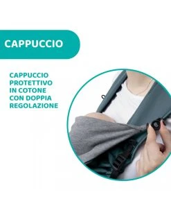 Il cappuccio può essere utilizzato in una doppia configurazione: quando abbassato dona un supporto agiguntivo al collo del bambino mentre, quando alzato, garantisce la massima protezione durante i sonnellini e le passeggiate al sole.