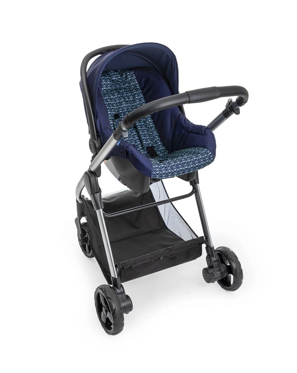 Chiuso è molto compatto e sta in piedi da solo! Con struttura in alluminio, maniglione unito in ecopelle regolabile in altezza e chiusura a libro. Ruote anteriori singole piroettanti, ruote posteriori più grandi con sospensioni e freno. Il seggiolino auto (omologato 0, fino a 10 kg di peso) si aggancia con le cinture a 3 punti dell’auto, navicella omologata auto fino a 10 kg con kit auto incluso, prese d’aria sulla capote e schienalino reclinabile. Il passeggino si trasforma in versione nanna. Accessori inclusi: borsa coordinata, coprigambe navicella, capote regolabile con aerazione, cestello portaoggetti, kit auto e 2 miniriduttori double face per passeggino e seggiolino auto. Pesi utili ai genitori: Navicella kg 5; passeggino kg 8.8; seggiolino kg 3.2. Dimensioni del passeggino: aperto 86x60x107 cm; chiuso 78.5×60 cm. Venduto separatamente: materassino universale per navicella 69×30 cm.