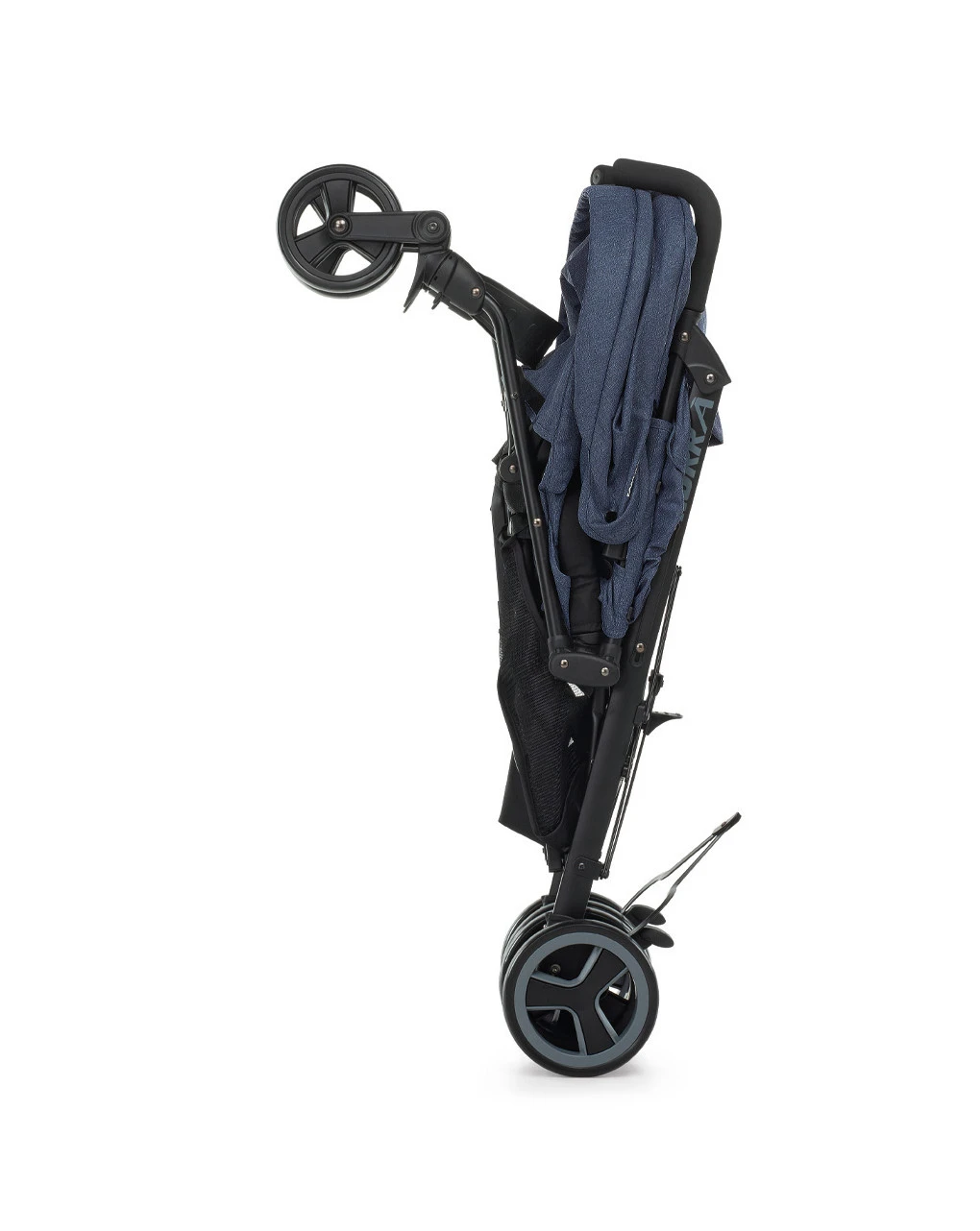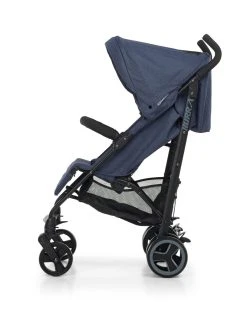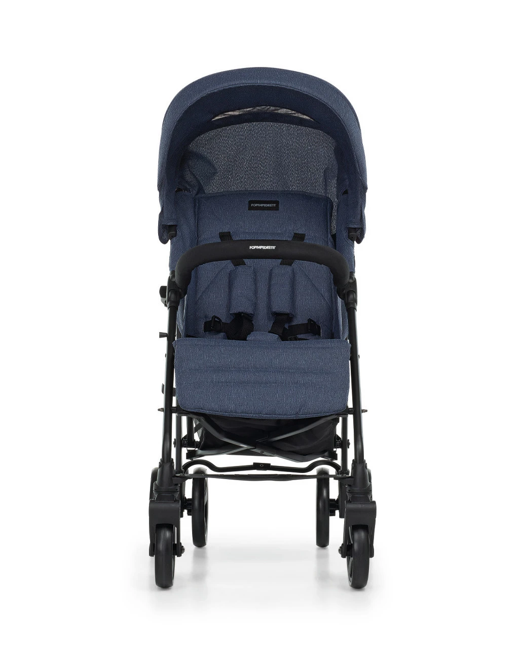 Passeggino leggero con telaio in alluminio, chiusura ad ombrello Utilizzabile fin dalla nascita, è omologato da 0m a 15kg. Schienale reclinabile multiposizione, davantino removibile, ruote anteriori piroettanti e freno a pedale. Capottina regolabile con giochino, tasca portaoggetti e apertura osserva bimbo.
