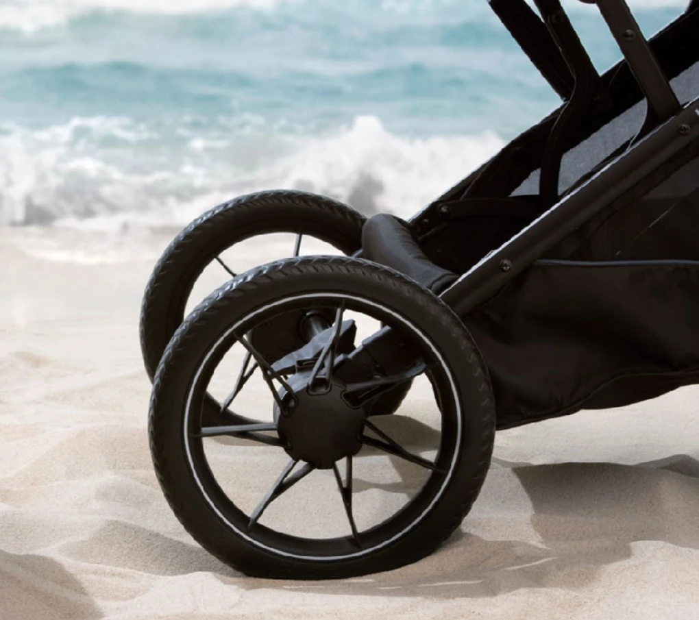 Garantisce passeggiate confortevoli su qualunque tipo di terreno, grazie alle ruote di grandi dimensioni, dotate di cuscinetti a sfera e morbide sospensioni.