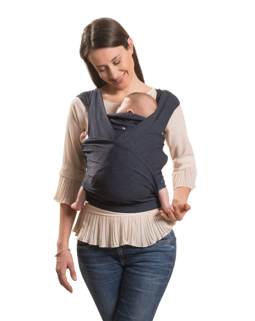 Bastano tre semplici gesti per indossare il tuo portabebè: chiudi, indossa, lega.