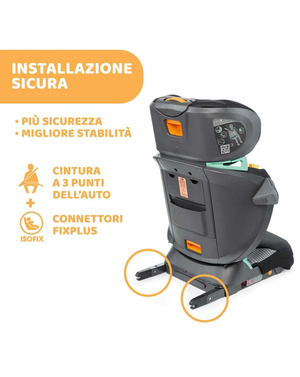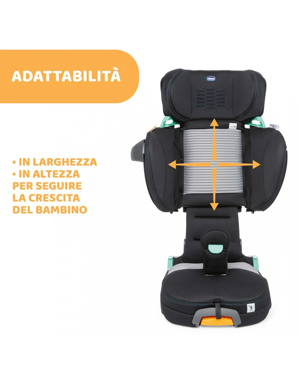 Fold&Go i-Size Air è il seggiolino auto più compatto della gamma Chicco. È omologato secondo la recente normativa i-Size (ECE R129/03) ed è l’ideale per bambini più grandi con un’altezza compresa tra i 100 e 150 cm (3-12 anni circa). Super compatto e leggero: può essere ripiegato facilmente quando non in uso e trasportato con facilità grazie alla comoda maniglia. Facile e veloce da installare con connettori isofix e cintura a 3 punti dell’auto garantendo il massimo della stabilità del seggiolino stesso. Adattabile facilmente in larghezza ed altezza per seguire la crescita del bambino ed il corretto comfort. Gli inserti in rete 3D garantiscono la massima traspirabilità anche nei giorni più caldi. Le protezioni laterali, il posizionatore della cintura e il Safe Pad per il mento garantiscono la massima protezione per le aree più delicate del corpo.
