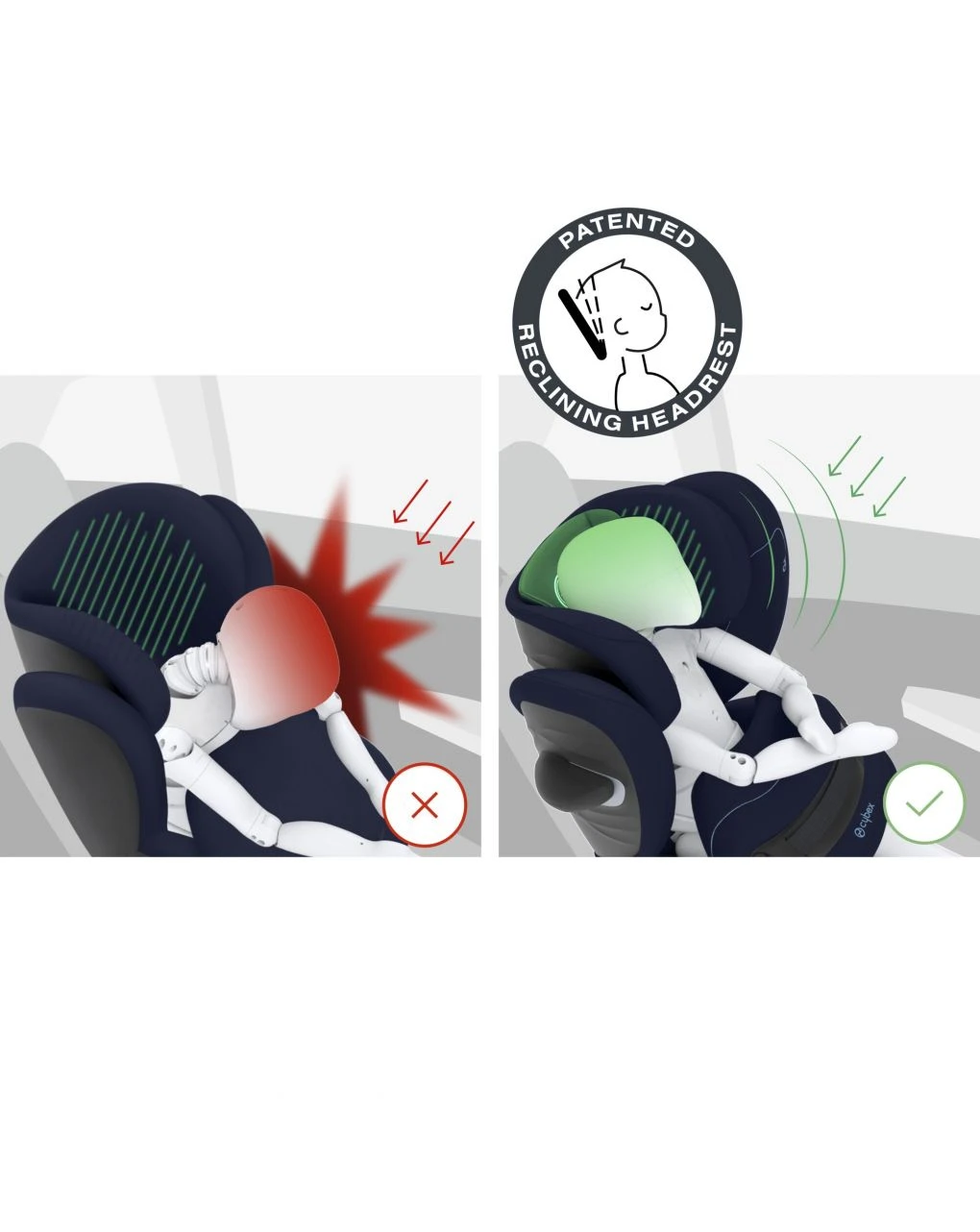 Il tuo bambino รจ protetto da un cuscino di protezione finchรฉ non raggiunge i 21 Kg. A questo punto il cuscino viene rimosso e il seggiolino viene installato con la cintura di sicurezza del veicolo, fornendo una protezione affidabile fino ai 150 cm (circa 12 anni). Lโavanzato cuscino di protezione aiuta a ridurre il rischio di lesioni al collo in caso di collisione frontale, con prestazioni superiori rispetto a un sistema di ritenuta con cinturine. In uno scontro frontale il cuscino di protezione agisce in modo simile a un airbag, con la forza dโurto distribuita su tutta la sua ampia superficie. Questo riduce la tensione sul collo e protegge la testa del bambino. ISOFIX e Top Tether assicurano che il seggiolino auto possa essere installato facilmente e in sicurezza. Gli ISOFIX aiutano ad installare correttamente il seggiolino mentre il Top Tether fornisce un ancoraggio aggiuntivo per una maggiore sicurezza e stabilitร .