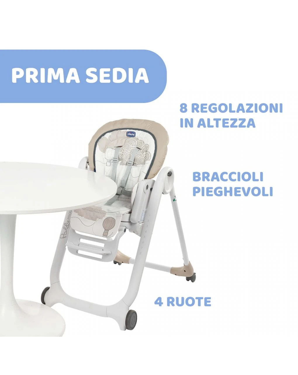 Il seggiolone Polly Progres5 di Chicco è la soluzione che cercavi per la pappa, il relax e i momenti di gioco del tuo bambino. Pratico e facile da usare, si trasforma in una sdraietta reclinabile su quattro livelli, che diventa un comodo rialzo sedia per accompagnare i più piccoli al tavolo nel momento della pappa. Grazie alle 4 ruote è facile da spostare anche con il bambino a bordo; l’altezza regolabile in 8 livelli e 2 posizioni, il poggiagambe e piedi regolabilipermettono al seggiolone di adattarsi perfettamente alla crescita dei tuoi figli. Super compatto e facile da richiudere grazie alla parte superiore rimovibile, Polly Progres5 Chicco è dotato di un mini-riduttore e di una barra con pendenti per intrattenere il piccolo. Le comode imbottiture e un sistema anti-caduta garantiscono la massima sicurezza.