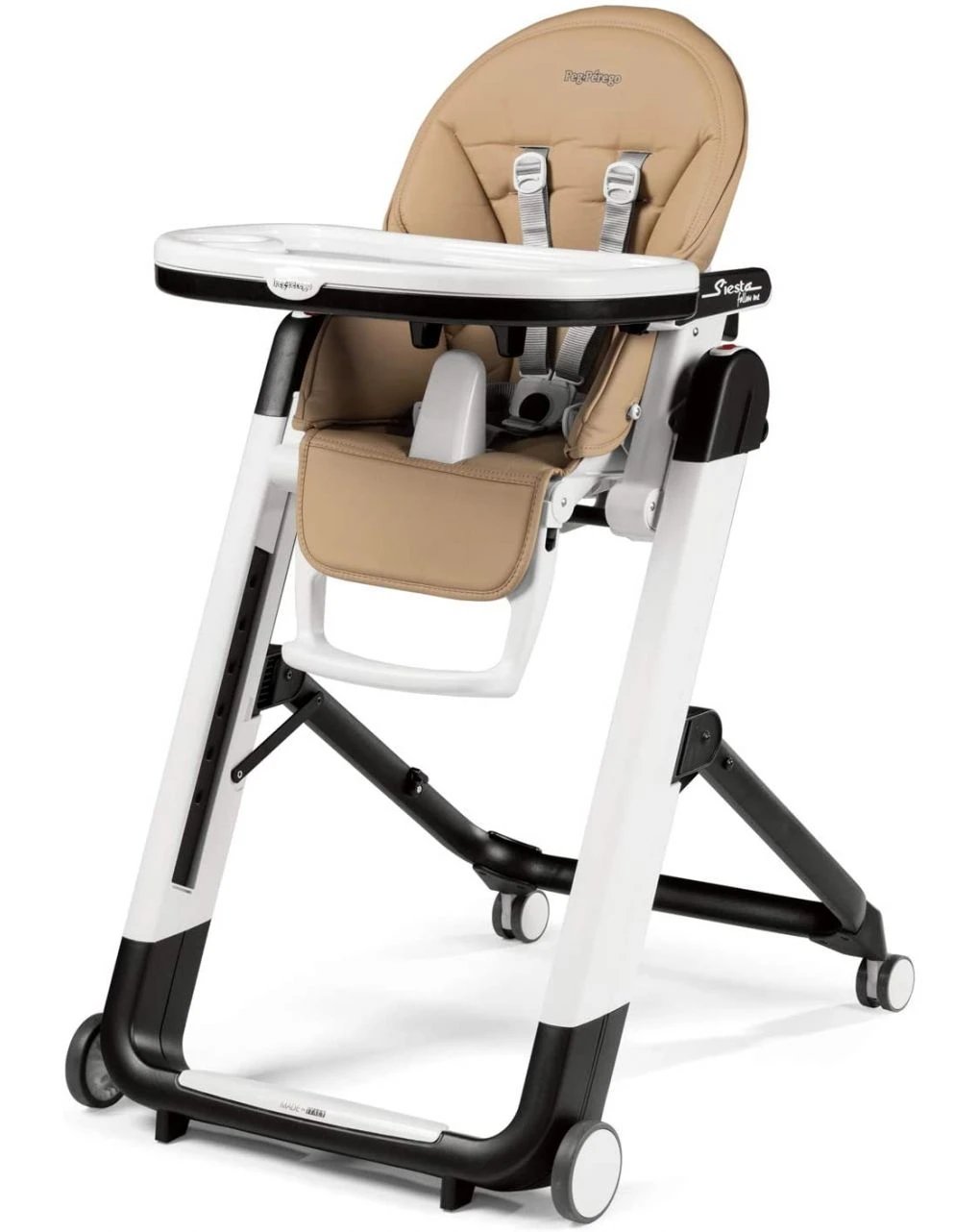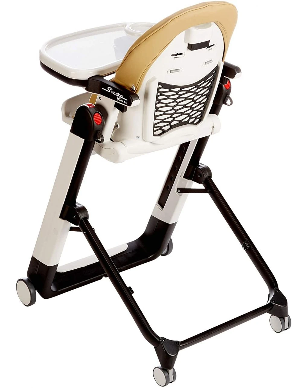Siesta può essere utilizzato anche senza il vassoio per far mangiare il bambino a tavola con te. Omologato dalla nascita con seduta regolabile in altezza in 9 posizioni diverse. Lo schienale reclinabile è in 5 posizioni e la pedanetta della seduta è regolabile in 3 posizioni. Dotato di pratica retina-gommata portaoggetti, posizionata sul retro dello schienale, sacca lavabile con un panno umido, doppio vassoio lavabile in lavastoviglie e riposizionabile sulla struttura. Grazie al sistema Stop & Go, puoi spostare Siesta ovunque. La cintura di sicurezza a 5 punti e l’anatomico frontalino trattengono il bambino in tutta sicurezza. Chiuso è davvero compatto e sta in piedi da solo.